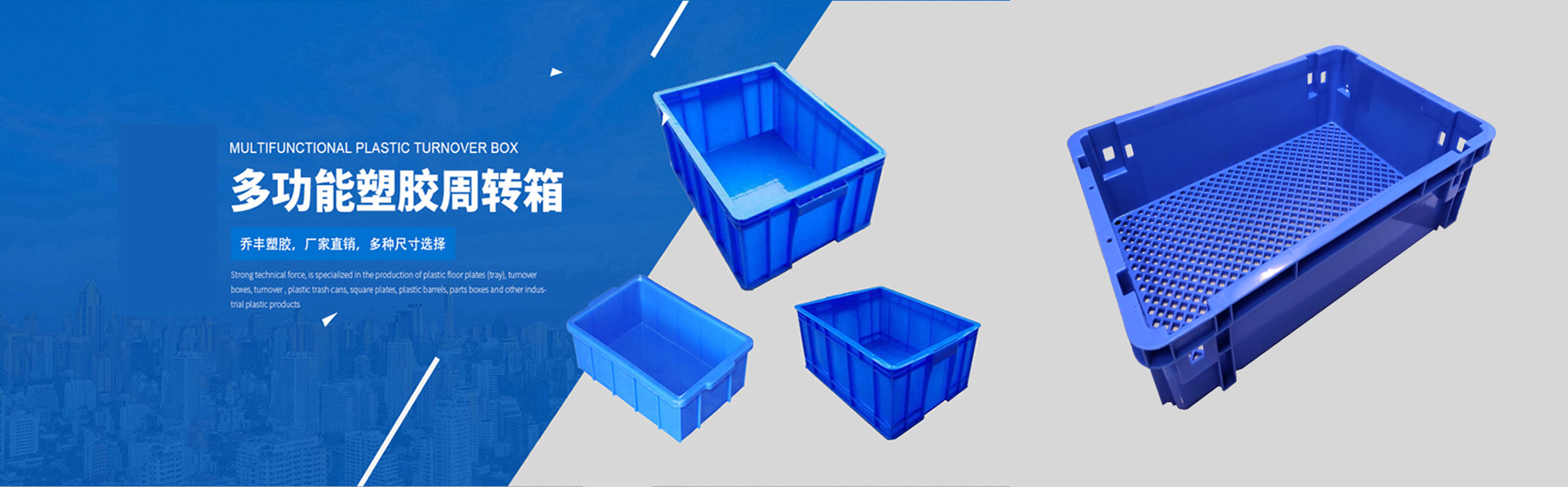 本公司擁有多臺先進的大型注塑成型設備,技術力量雄厚,產品豐富多樣,是專業生產塑料托盤/地臺板、周轉箱、食品箱、面包箱、餐具箱、多用箱、斜插式物流箱、套疊箱、周轉籮、套疊蘿/錯位筐、煙草筐、防潮墊板、零件盒、多用柜、組合箱、水箱、大白桶、方盆、方凳、EU箱、HP箱等塑料產品的企業。